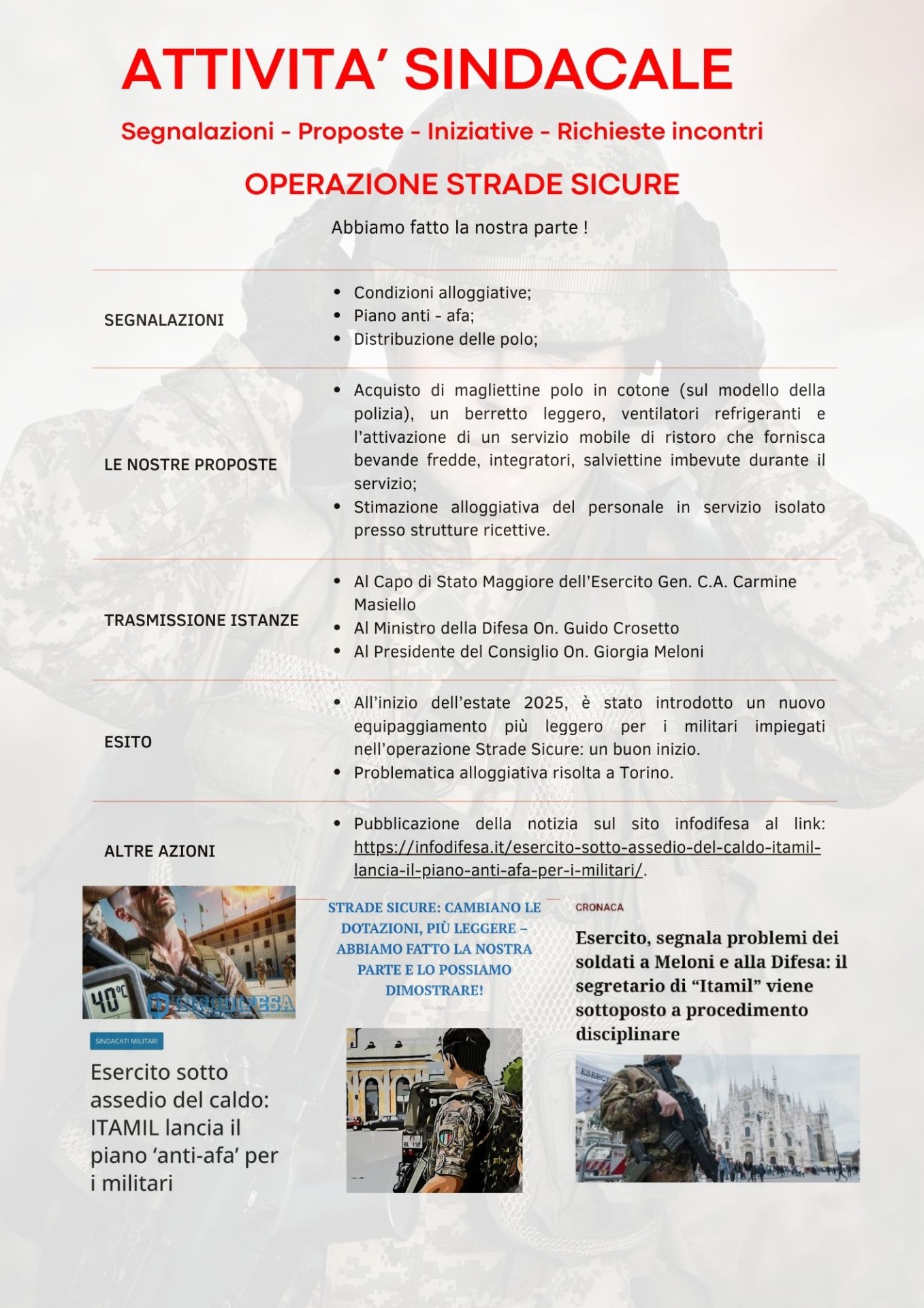 Operazione strade sicure noi del Sindacato ITAMIL ESERCITO abbiamo fatto la nostra parte!