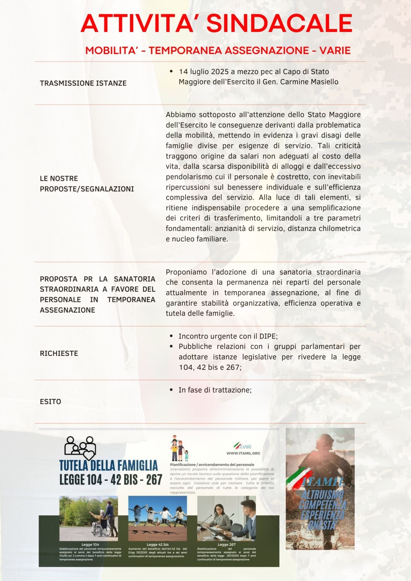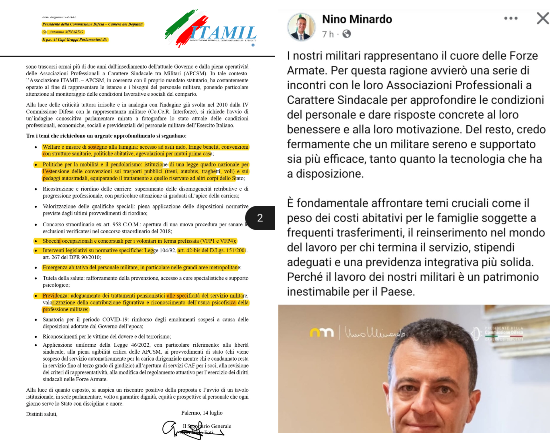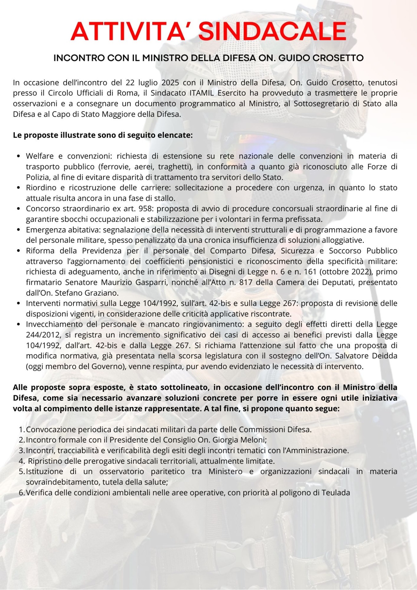 ITAMIL all'incontro con il Ministro della Difesa porta le proposte del personale, altre 18 sigle sindacali (tutte dell'esercito) leggono un documento a favore dei dirigenti sindacali.