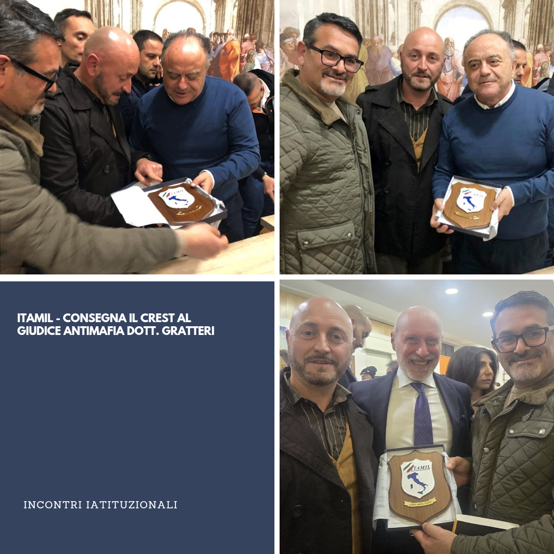 Momento particolarmente significativo è stato quello in cui la delegazione ITAMIL ha consegnato nelle mani del Procuratore Nicola Gratteri il crest simbolo dell'Associazione, gesto dal forte valore istituzionale che rappresenta la riconoscenza per l'impegno profuso nella difesa dello Stato e nella lotta alle mafie. Un segno tangibile di vicinanza tra il mondo della magistratura e quello delle Forze Armate e del sindacalismo militare, uniti dagli stessi valori di servizio, sacrificio e tutela della collettività.