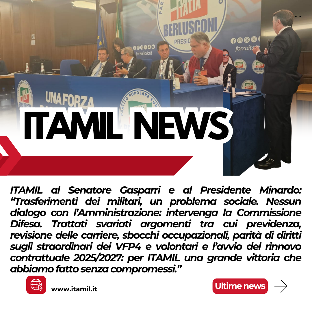 Durante la riunione della Consulta Sicurezza svoltasi alla Camera dei Deputati, il Sindacato ITAMIL ha denunciato la crescente criticità dei trasferimenti del personale militare, definendoli dal Segretario Generale Girolamo Foti come un vero e proprio problema sociale che coinvolge migliaia di famiglie.