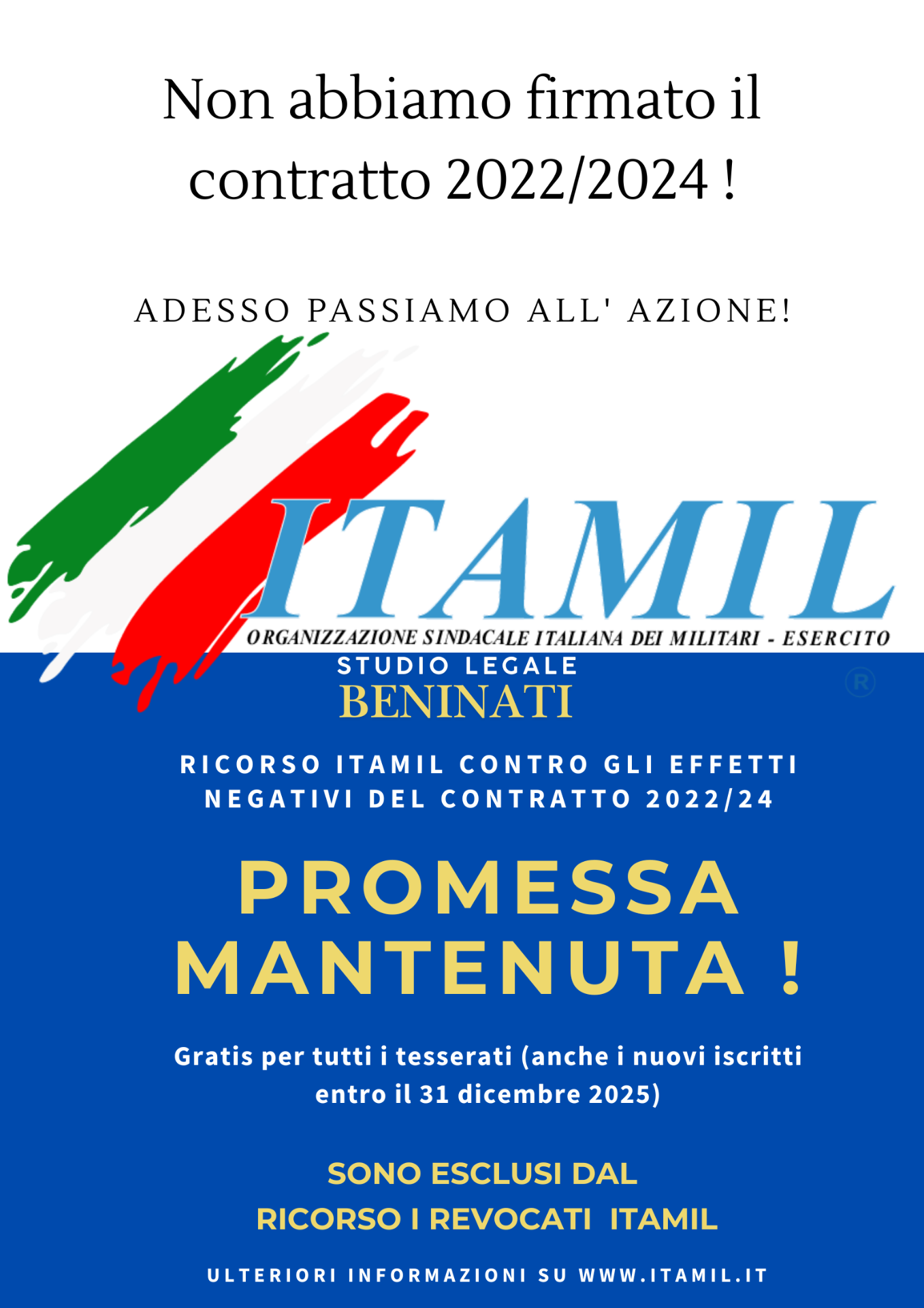 Dopo il primo ricorso gratuito a favore dei propri tesserati, l'APCSM ITAMIL annuncia il secondo ricorso al TAR del Lazio, anch'esso gratuito per gli iscritti, con i militari riconosciuti come parte lesa.