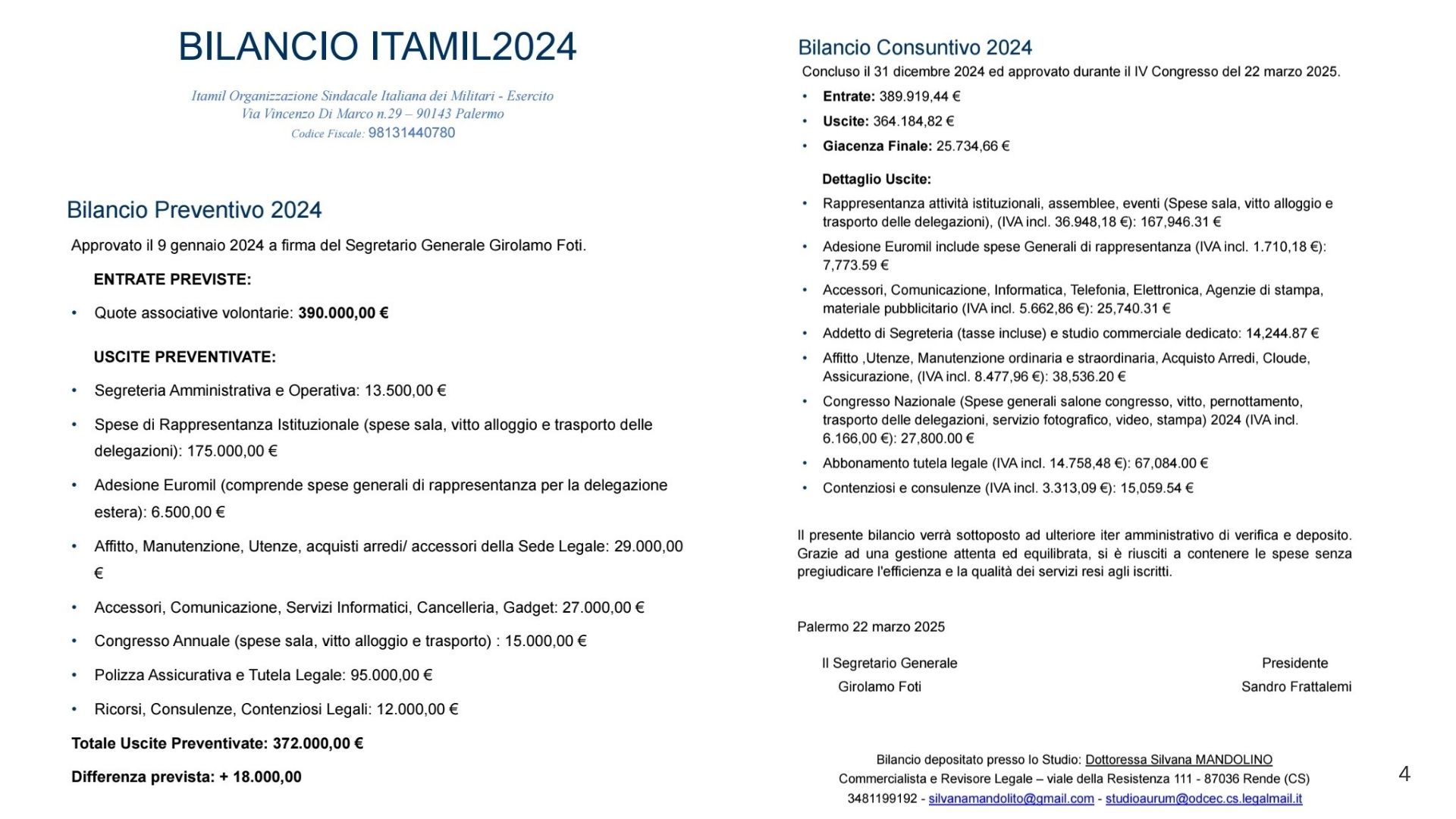 Tutti i bilanci ITAMIL sono redatti con criteri di veridicità, tracciabilità e coerenza contabile, e vengono sottoposti a verifica professionale.